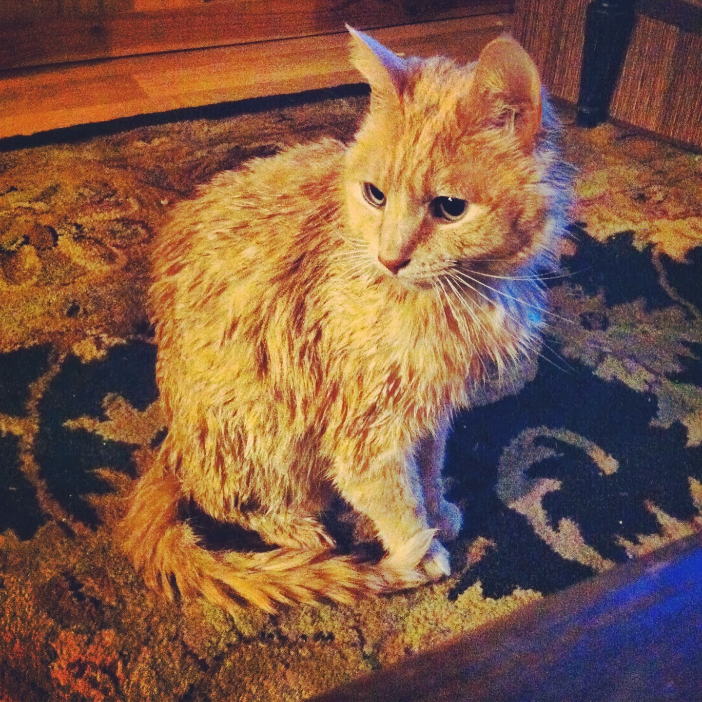 As of late, we have been having some pretty scary issues with Marley. Without getting into too much detail, the boy hasn't been able to make the boom boom on his own, without the help of an enema (too much detail I think...). The vet we had been taking him to in Seaview, WA was helping with the issue, but then sending him home to us... unkempt is the word I'll go with. The boy couldn't even stand the smell of himself, he was in constant embarrassment mode. The first time we thought we had the problem cleared up, we took him to a groomer who did a WONDERFUL job with him! He'd never smelled better. When the problem persisted and we had to take him for round two at the vet, enough was enough time to take matters into my own hands. I watched a YouTube video on how to wash a cat and this is the end result. Granted I used Ryan's body wash and did it in the kitchen sink, but he smelled like a dream and I didn't even get scratched! Now, almost $1500 later, boy thankfully is being able to make the dookie on his own, praise the lord.
